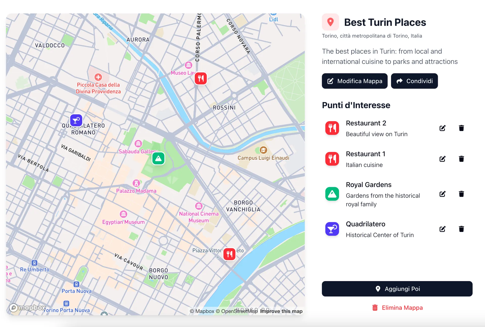 Aggiungi e gestisci i tuoi POI su una mappa semplice e veloce, basata su Leaflet.